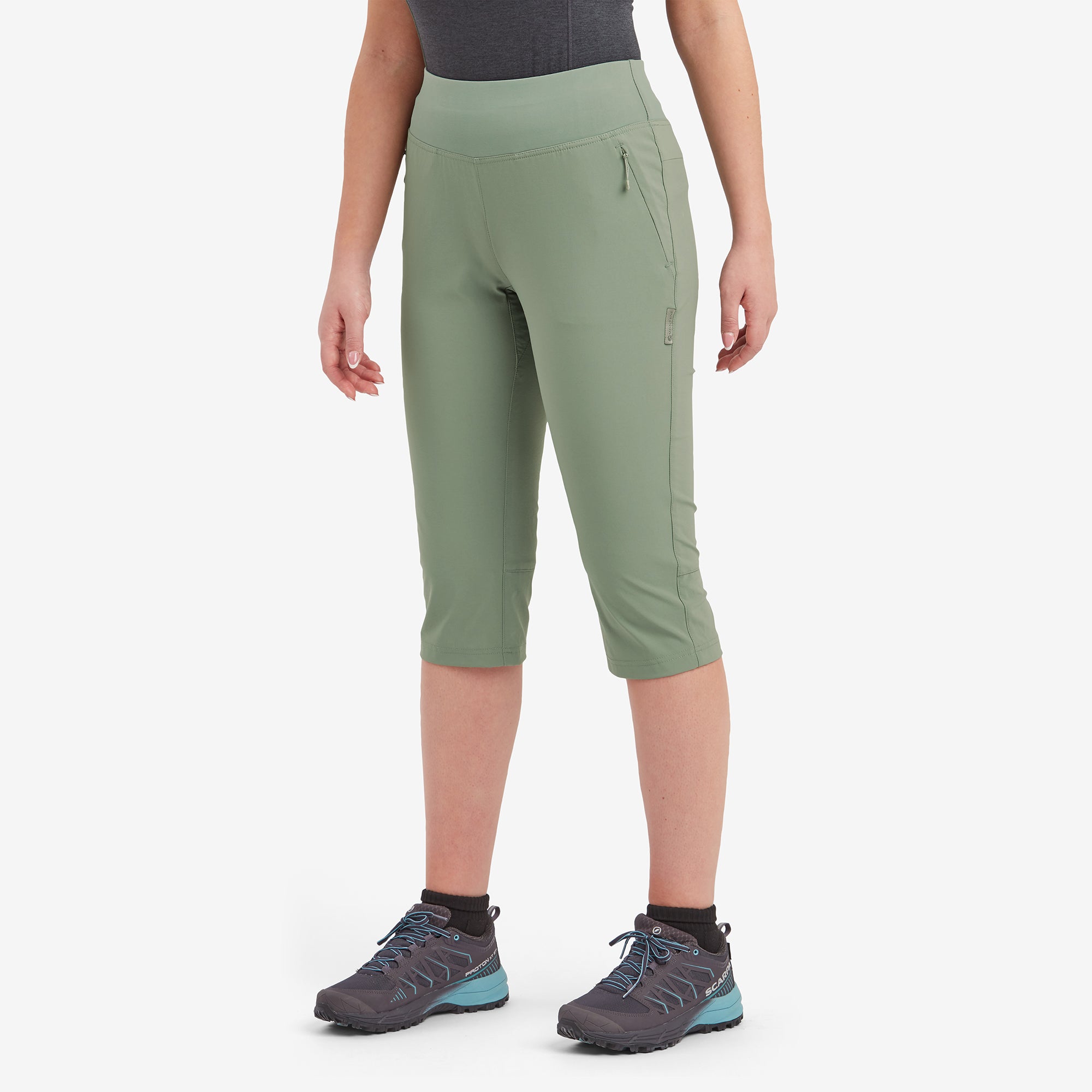 The Montane Women's Tucana Lite Stretch Capri 3/4 Pants have been designed using a lightweight four way stretch fabric with a deep stretch comfortable to wear waistband and articulated knees offering unrestricted movement with two zipped hand and rear pockets to keep essentials secure. Constructed using Granite Stretch Lite fabric which offers wind resistance the and environmental benefits of PFC free DWR. A great multi activity capri pant that will get you through your hardest uphill strides